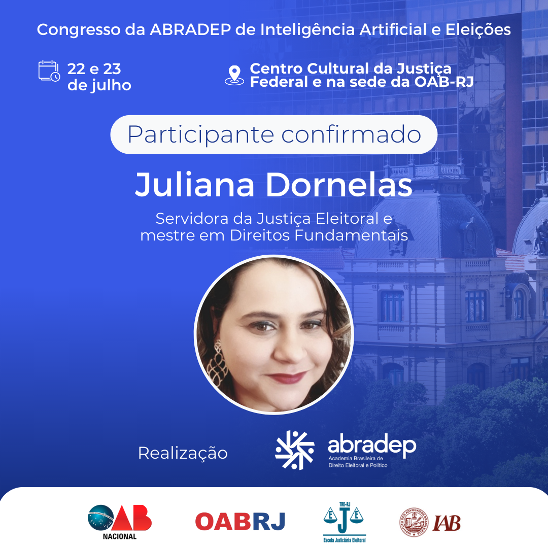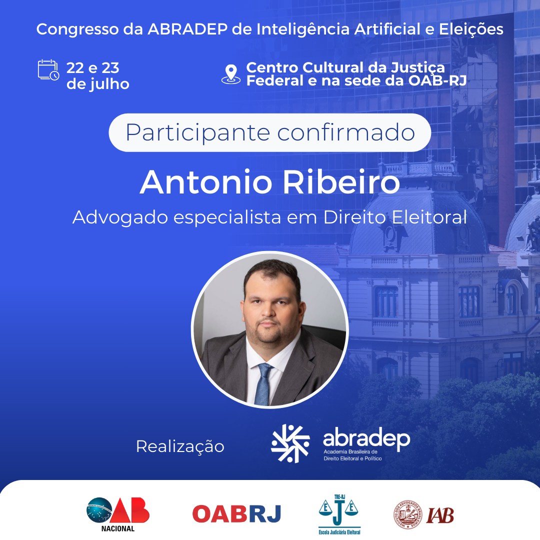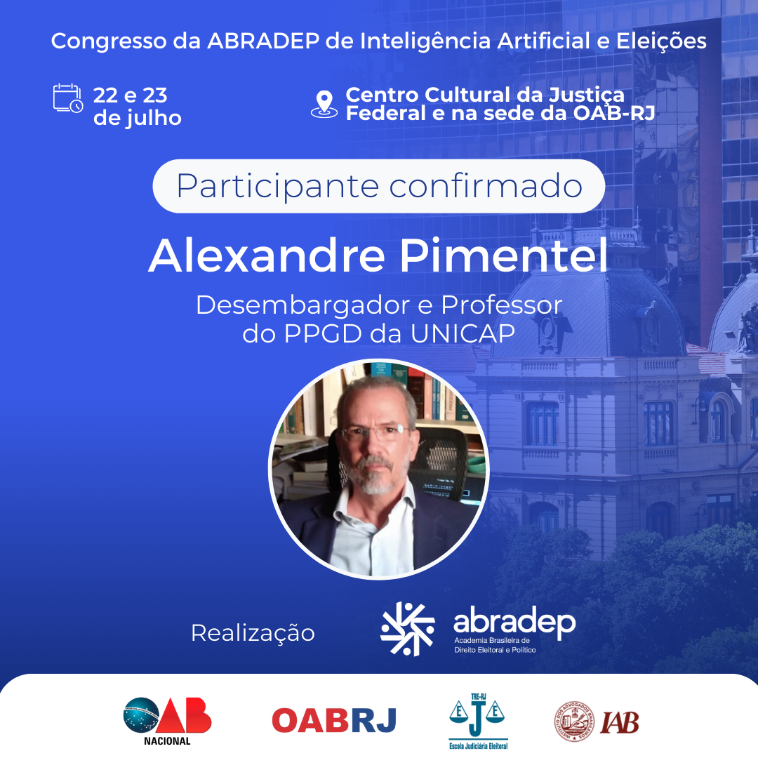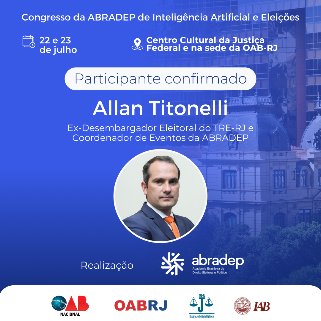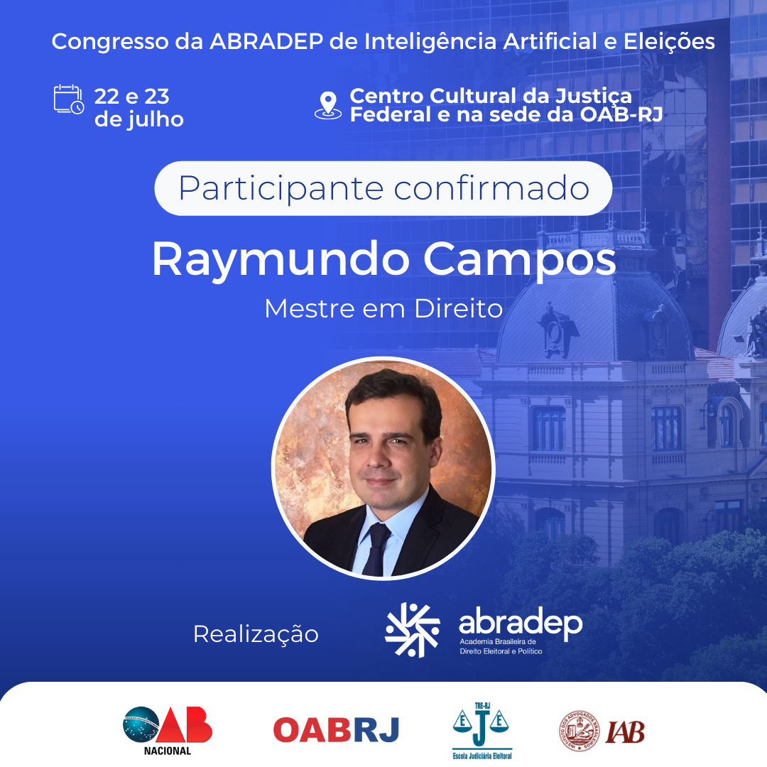 08/04/2024O 1º Congresso da ABRADEP de Inteligência Artificial e Eleições acontecerá nos dias 22 e 23 de julho, no Centro Cultural da Justiça Federal, no Rio de Janeiro, e na sede da OAB Rio de Janeiro. O evento fará uma homenagem ao Desembargador Fernando Cerqueira Chagas, além de debater os temas mais atuais e pertinentes referentes ao uso responsável da inteligência artificial e demais tecnologias nas eleições, o combate à desinformação e a defesa da democracia.