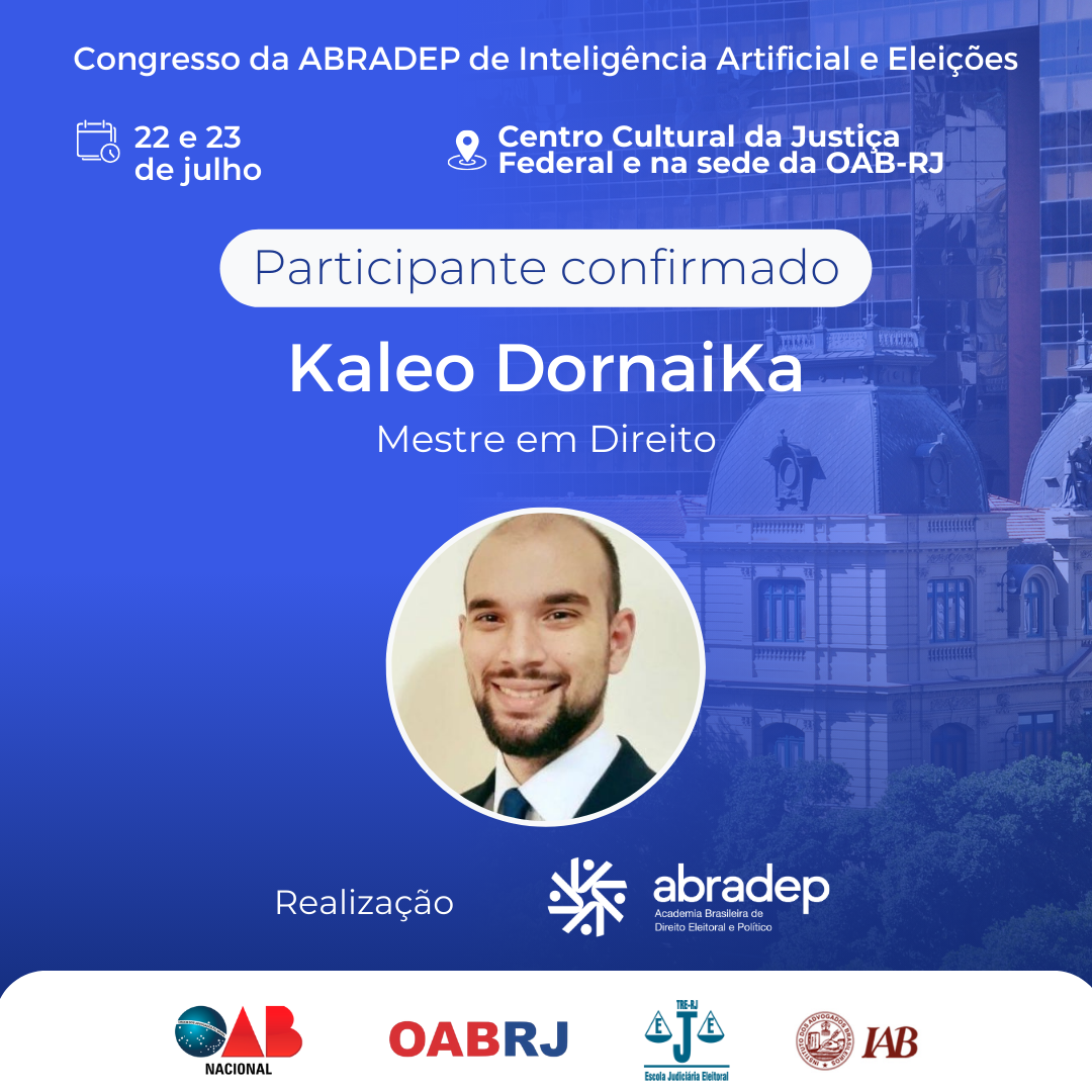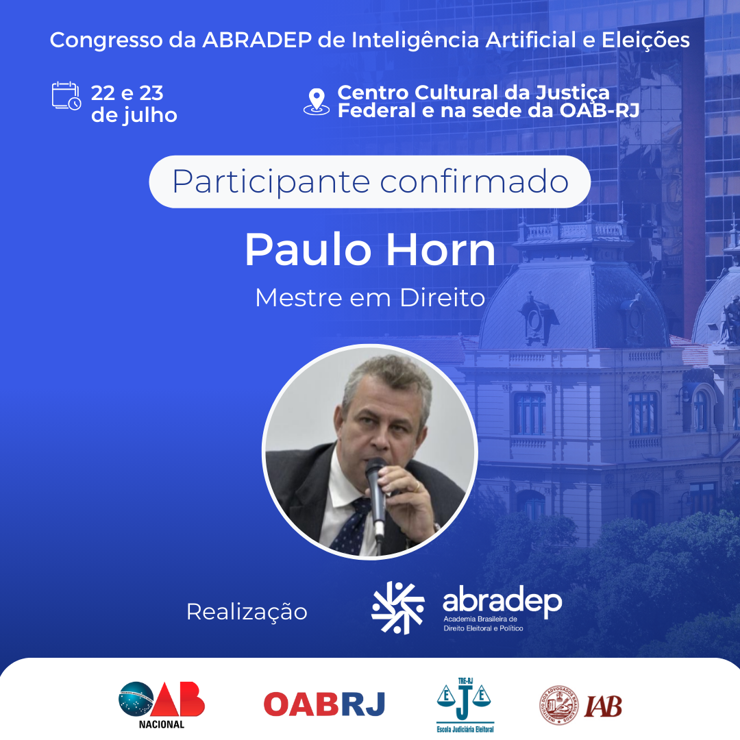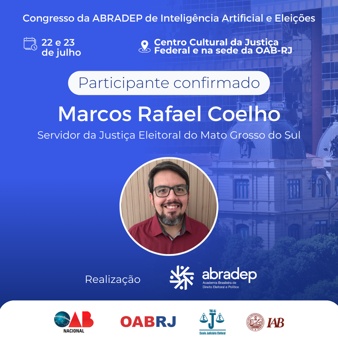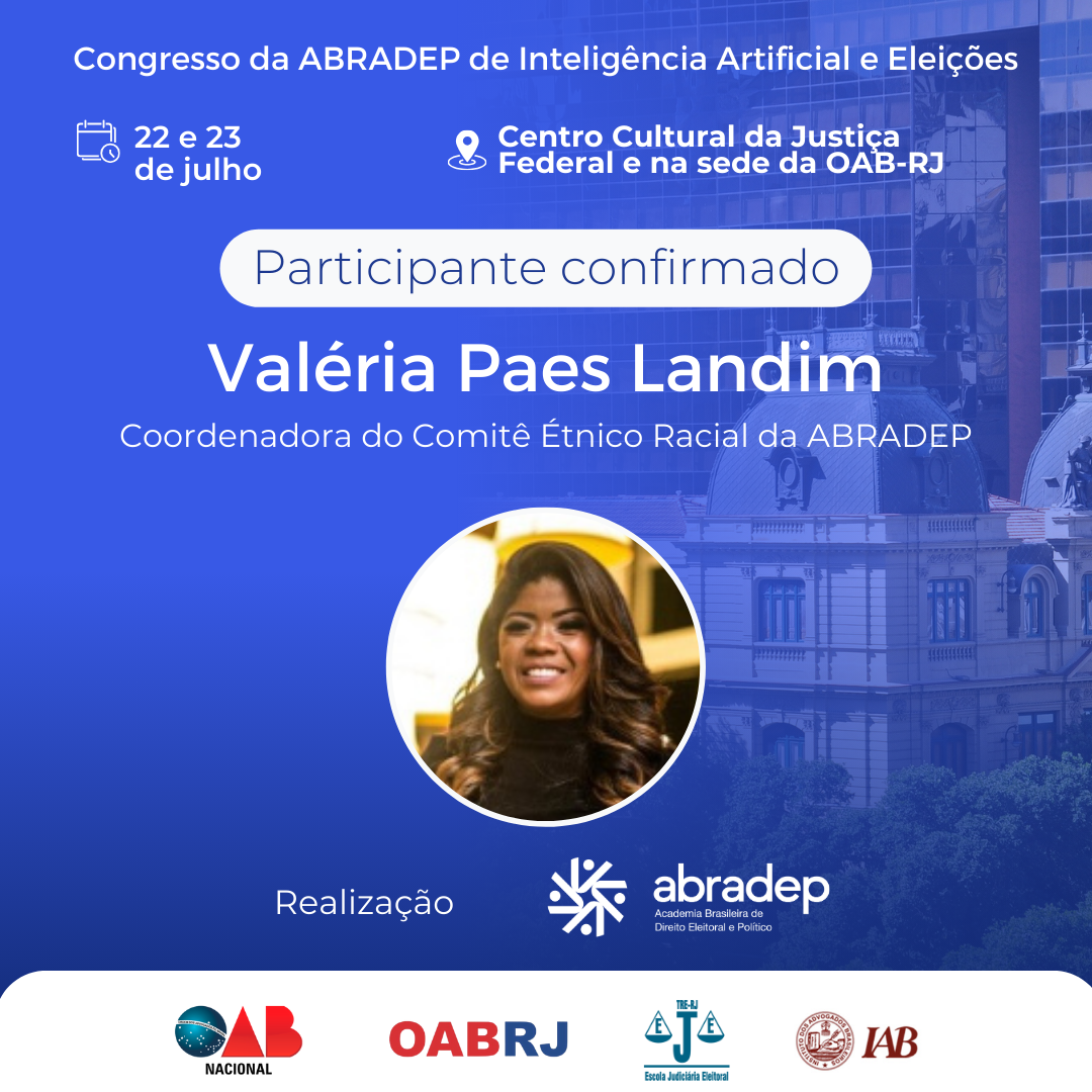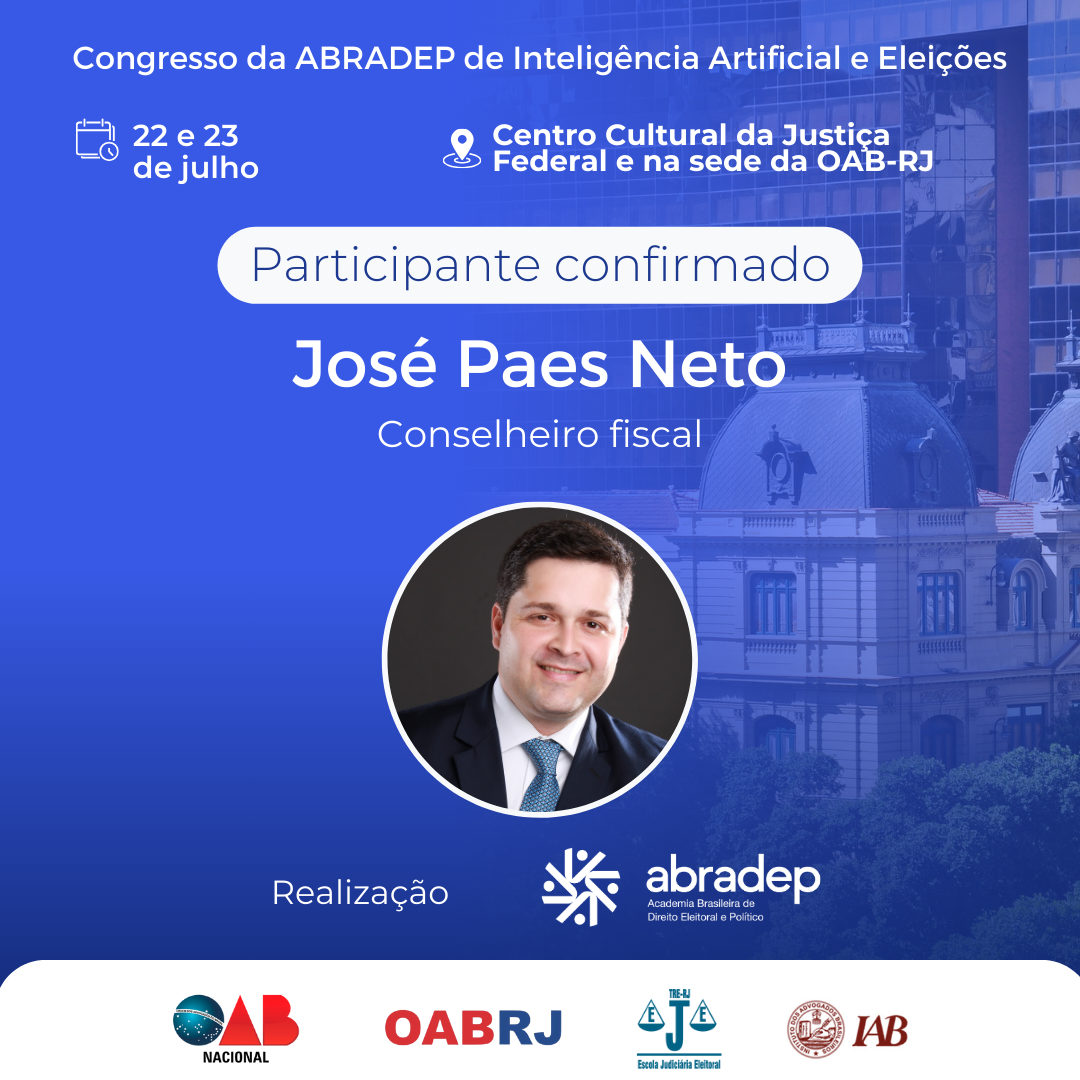 08/04/2024O 1º Congresso da ABRADEP de Inteligência Artificial e Eleições acontecerá nos dias 22 e 23 de julho, no Centro Cultural da Justiça Federal, no Rio de Janeiro, e na sede da OAB Rio de Janeiro. O evento fará uma homenagem ao Desembargador Fernando Cerqueira Chagas, além de debater os temas mais atuais e pertinentes referentes ao uso responsável da inteligência artificial e demais tecnologias nas eleições, o combate à desinformação e a defesa da democracia.