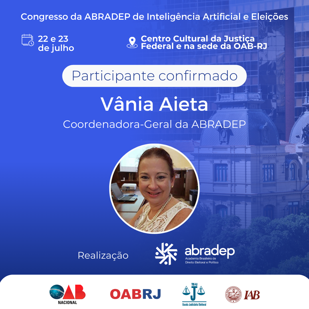 Vania Aieta – professora, coordenadora-geral da ABRADEP, presidente da Comissão de Direito Constitucional da OABRJ e presidente da Comissão de Direito Eleitoral do IAB