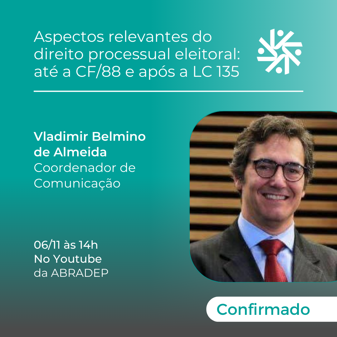 15/11/2023A ABRADEP deu continuidade ao projeto Convidados Especiais com a palestra do Professor Titular da UFES, Mestre e Doutor pela PUC-SP, e Juiz do TRE-ES (2004-2008), Flávio Cheim Jorge. A convite da coordenadora-geral Vânia Aieta, Cheim, que é membro da ABRADEP, falou sobre “Aspectos relevantes do direito processual eleitoral: até a CF/88 e após a LC 135”.